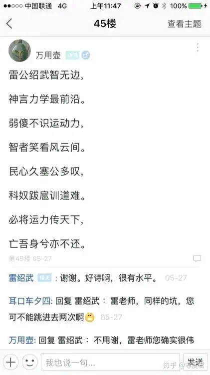 有功夫去考古的小伙伴可以去民科吧搜索“咏雷”这个帖子,1000+楼哦。话说雷老师之前还有一个5000+和3000+的帖子,不过后来因为违反吧规被吧主直接炸楼了。谨以此缅怀一下。