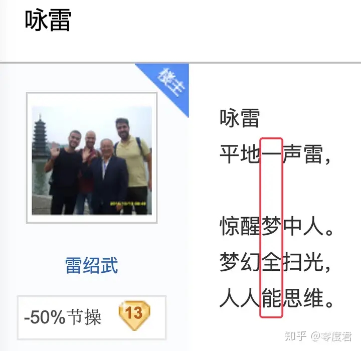 注意评论区有个“同样的坑”,这个坑是什么呢?其实就是雷老师之前自己写了一首咏雷来赞美自己,结果: