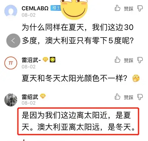 雷老师曾经发过好几个帖子讨论地球上的四季变化问题,比如刚开始他认为四季变化是距离太阳远近不同导致的......