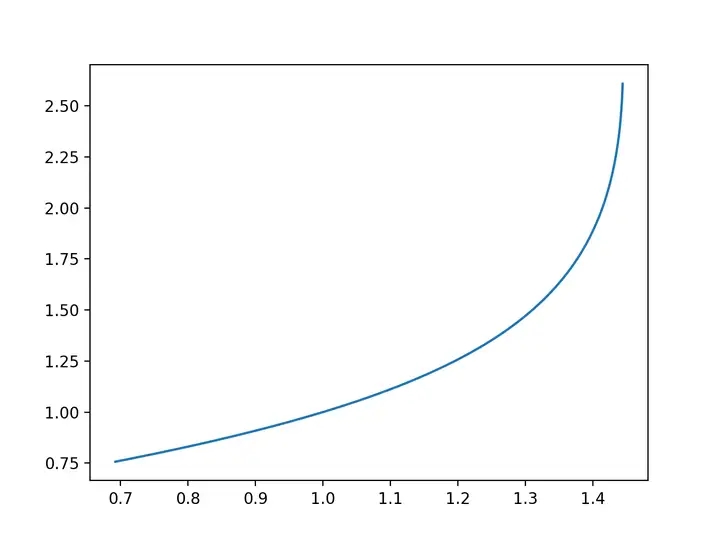 为了方便下一步计算,我们用换底公式对 g(a)min 做一次代换。 g(a)min=lnx1−lnxln(lnx1) ,显然若 g(a)min>0 则 f(x)=a 不存在