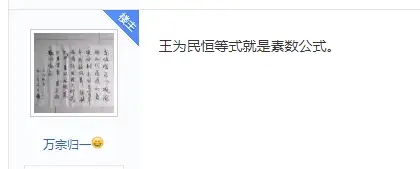王为民多次宣称他的恒等式就是所谓的素数公式......其实吧......恒等式都不成立哪里来的素数公式