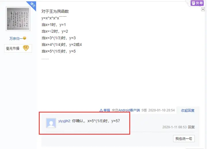 实际上王为民之前还把这个所谓的公式叫做王为民函数,只是这面建议王为民重新学习一下算术呢