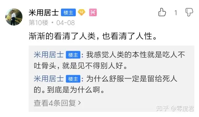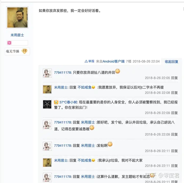 某天米用在自己的回复下留下遗言,当然据说还有另一个贴子是和家人告别的什么来着,截图已经失踪了。也许某些大水比手里还有吧。