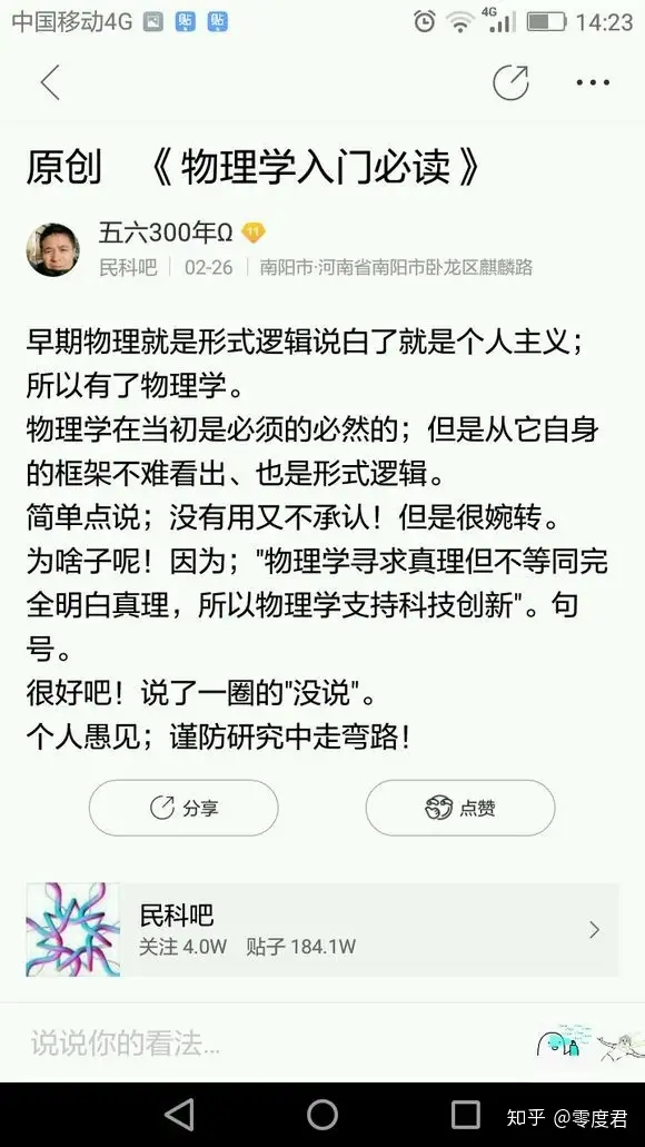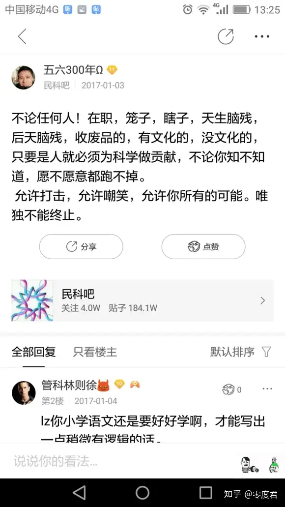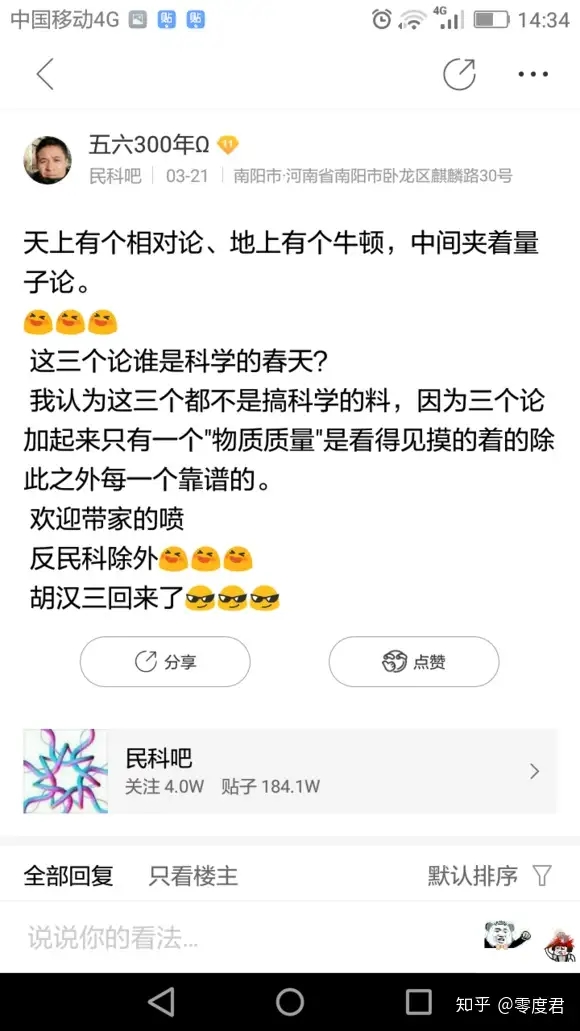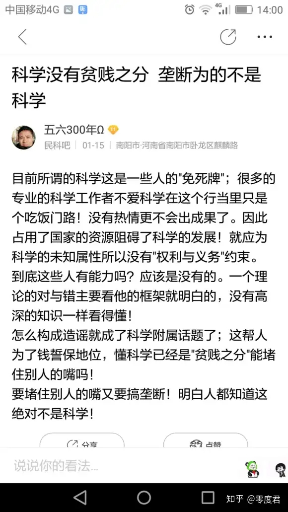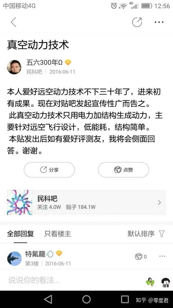 很快,民纷看在民科吧发表了自己的第一帖,然鹅,响应者寥寥无几
