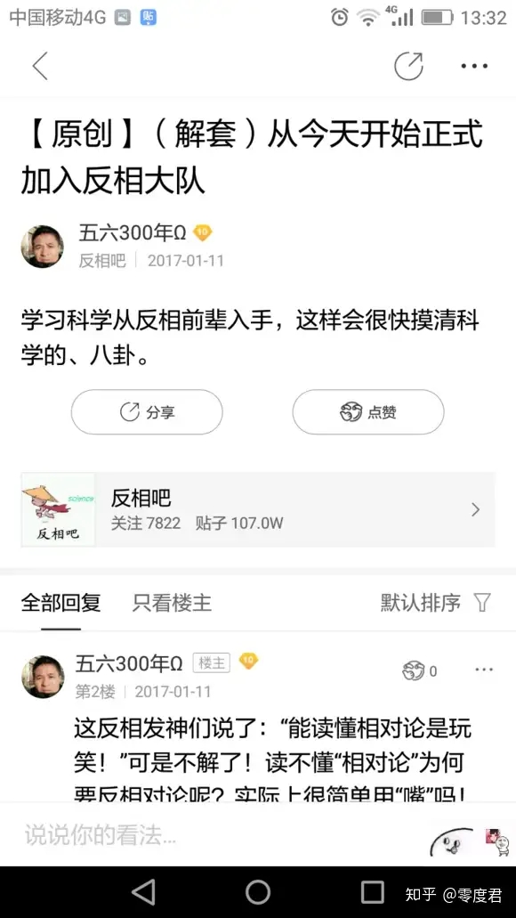战败的民纷看最终转战民科的另一大根据地——反相吧。关于反相吧我的看法是,如果民科吧平均智商是10的话,反相吧几乎是1。民纷看很轻易的就在反相吧打开了局面,比如: