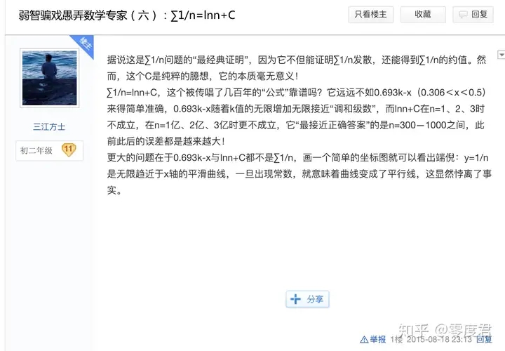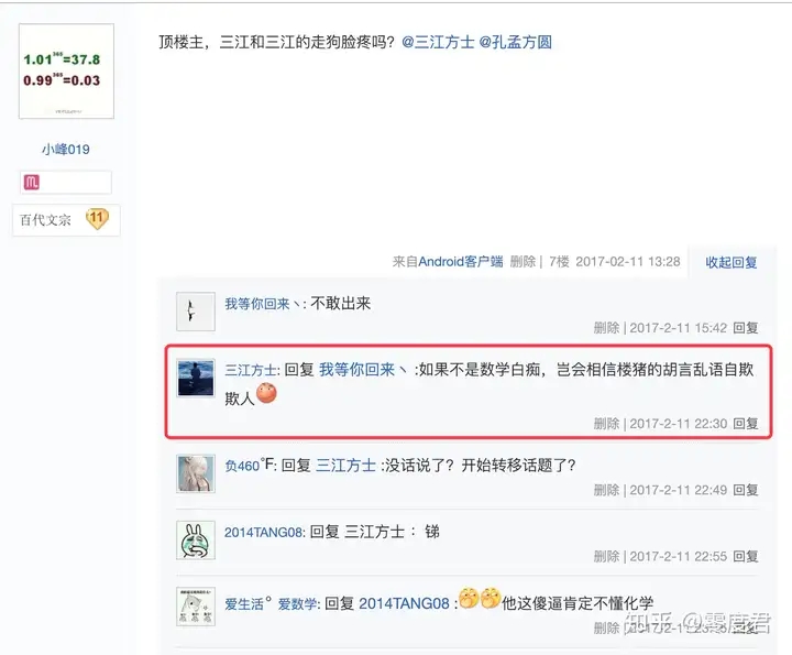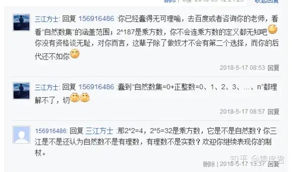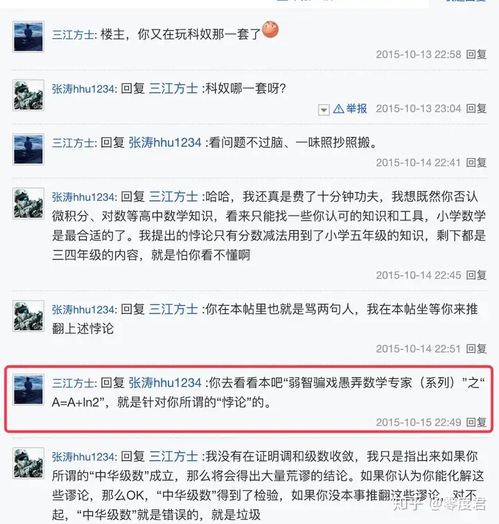 当然,很快就有人发现了三江是理解不了无限和极限的概念的,不过这并不妨碍大家用初等数学钓鱼: