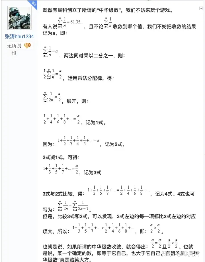 所谓“中华级数”其实说白了就是三江认为调和级数是收敛的!