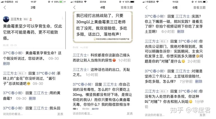 黄曲霉素是一种比砒霜毒性高很多的物质,类人致死量0.36mg每公斤体重。我(民科吧吧主春小树)举出了很多历史上大规模黄曲霉素中毒死亡事件。三江均以科共体全是骗人的滑过去了,让他出示证据时,却被从不打草稿的三江方士告知他说的就是对的,科共体都是错的,啥都是错的,只要是科共体说的话没一句对的,都是阴谋故意骗人的。